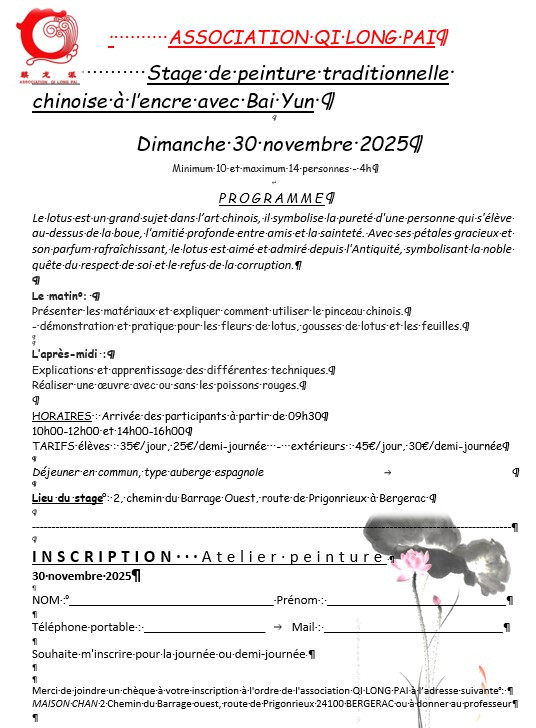 Stage de peinture chinoise avec Bai Yun, Maison Chan - COMPLET